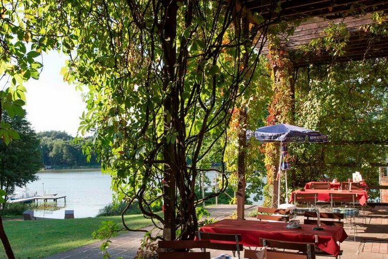 Zahlreiche mecklenburgisch-regionale Gerichte erweitern das Speiseangebot. Den nicht endenden Rundumblick über den Nebelsee mit seiner romantischen Waldlandschaft genießt man hier bei hausgebackenem Kuchen zum Kaffee oder einer Eisspezialität von der Seeterrasse des Hauses.