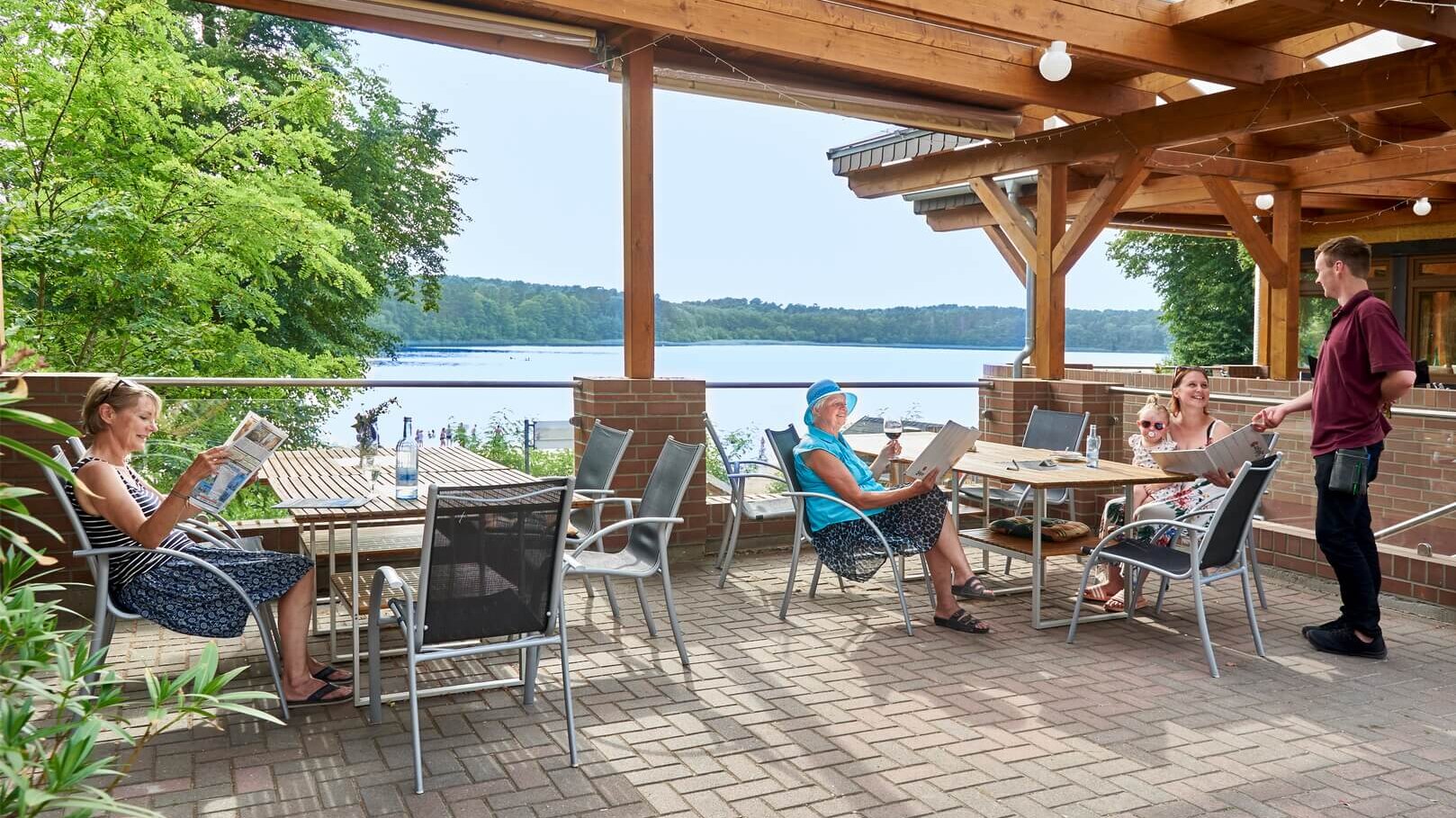 Altbewährtes, wie mecklenburgisch einheimische Küche und Räucherfisch-Spezialitäten sind beliebt, werden weiterhin angeboten, und die Vielfalt in der Menükarte wurde um regionale Wildgerichte nebst Angeboten vegetarischer Kost erweitert. Der Terrassenbetrieb findet überdacht statt, so bleibt der Gast vor starker Sonne und Regen geschützt und hat eine wunderschöne Aussicht auf den belebten Strand und den Weissen See.