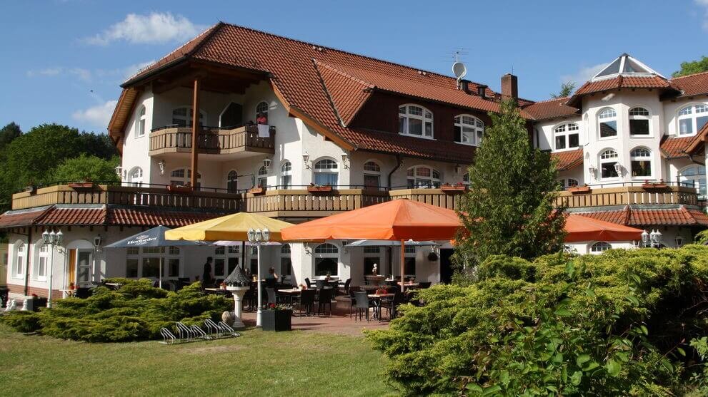 Das traditionsreiche, familiär geführte 4-Sterne-Hotel „Heidekrug“ mit Restaurant in Grünplan, liegt direkt am kleinen idyllischen Haussee, der auch zum Baden einlädt.